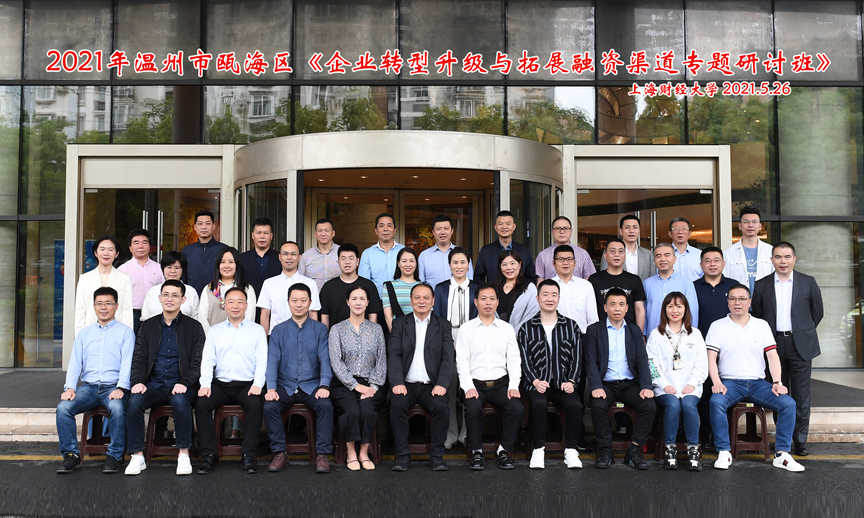5月26日,由上海财经大学继续教育学院与温州市瓯海区金融工作服务中心联合举办的“2021年温州市瓯海区企业转型升级与拓展融资渠道专题研讨培训班”开班仪式于上海财经大学豪生酒店举行。来自温州市瓯海区的38名学员参加了培训。温州市瓯海区金融工作服务中心陶臣建主任,上海财经大学继续教育学院邵建利副院长出席了开班仪式并致辞。