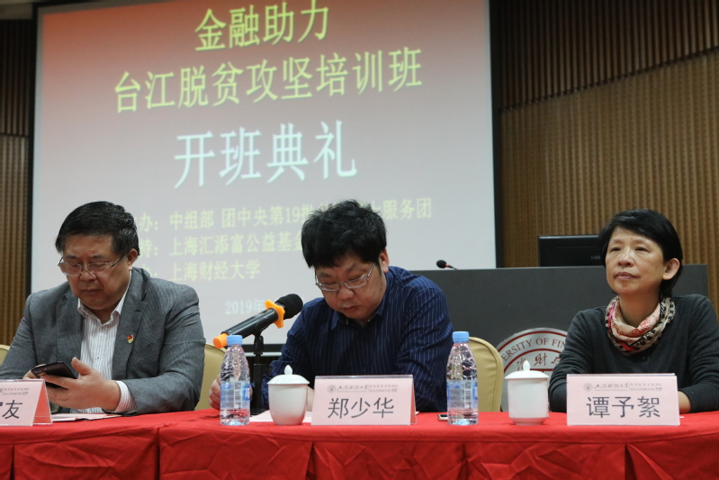 201949日上午,贵州省台江县金融助力脱贫攻坚培训班在我校中山北一路校区顺利开班。中国人民银行上海总部党委委员、金融消费权益保护局局长余文建,中国人民银行上海总部副巡视员兼金融服务一部主任季家友,贵州省政府驻沪办副主任杨维炘,贵州省台江县委常委、常务副县长吴常清,上海财经大学校长助理郑少华等出席开班典礼。35位来自当地金融机构、地方政府平台公司以及金融监管部门等相关金融从业人员参加学习。
